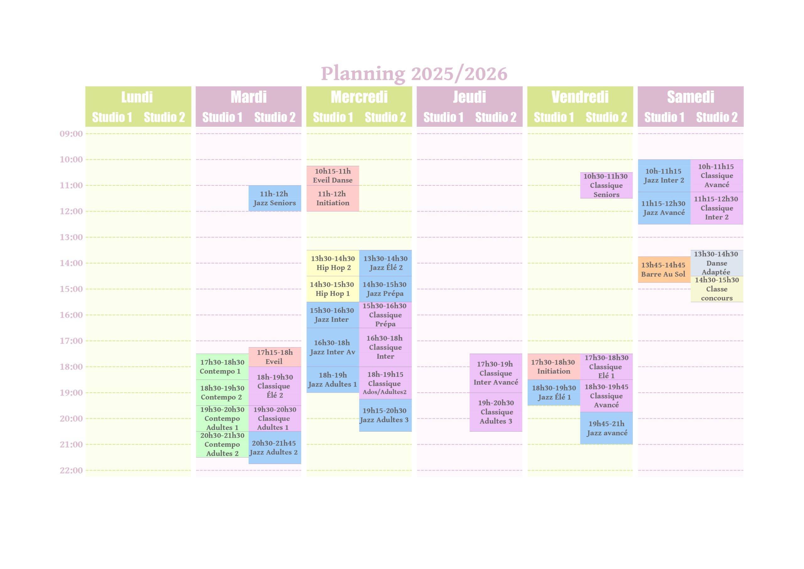 *Cours inter 2 : 2ème cours possible (classique et/ou jazz) pour les élèves entre 10 et 13 ans après validation des professeurs